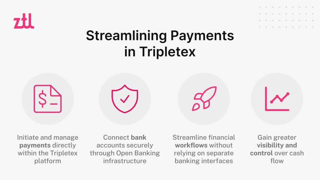 By leveraging ZTL’s robust payment framework, Tripletex ensures secure, compliant, and scalable banking connectivity for its users. The integration allows businesses to execute payments efficiently while maintaining high standards of security and regulatory compliance.